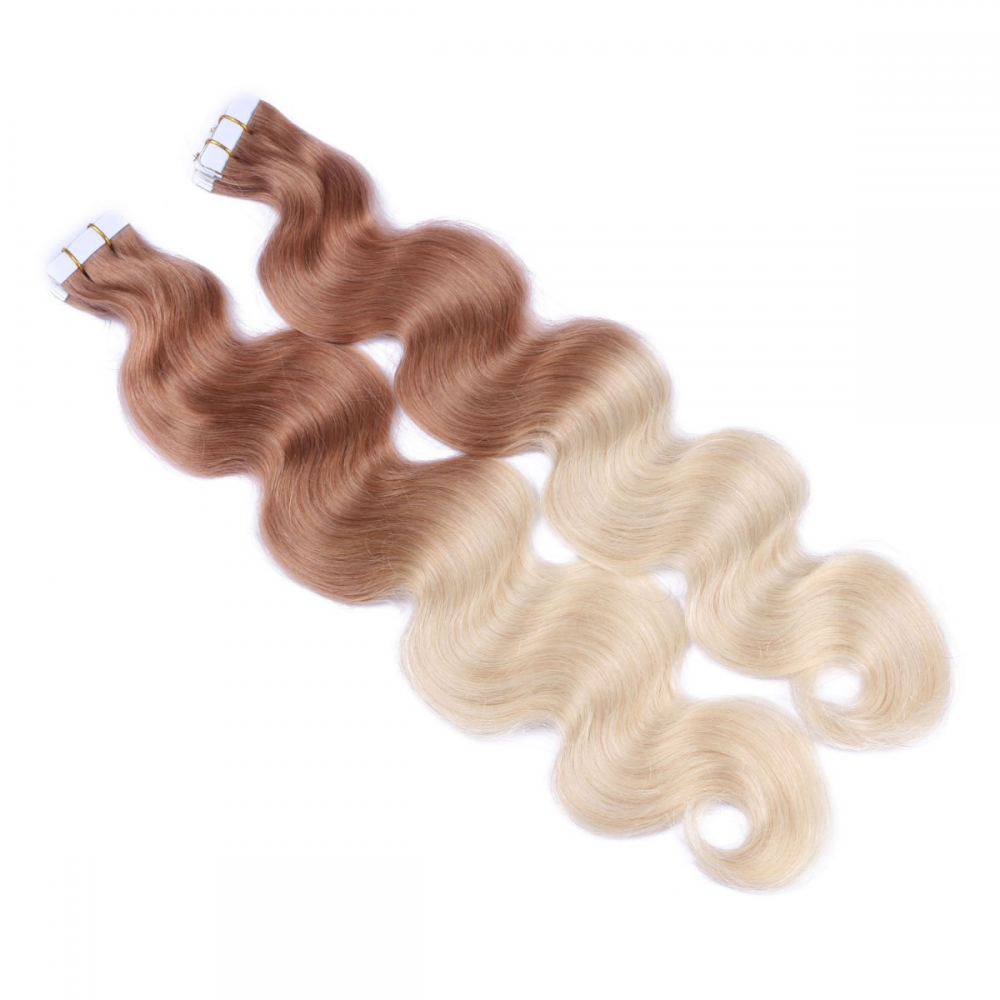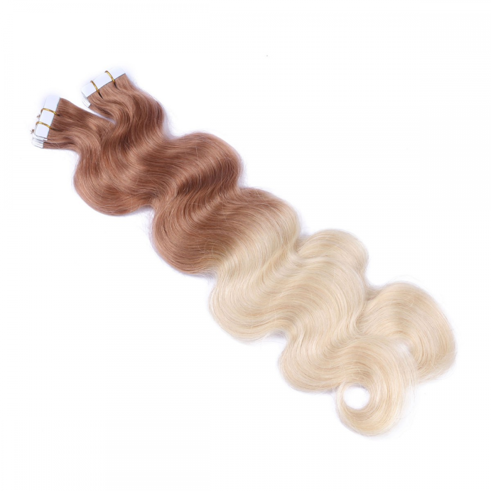 10 x Tape In - 12/60 Ombre - GEWELLT Hair Extensions - 2,5g - NOVON EXTENTIONS 60 cm