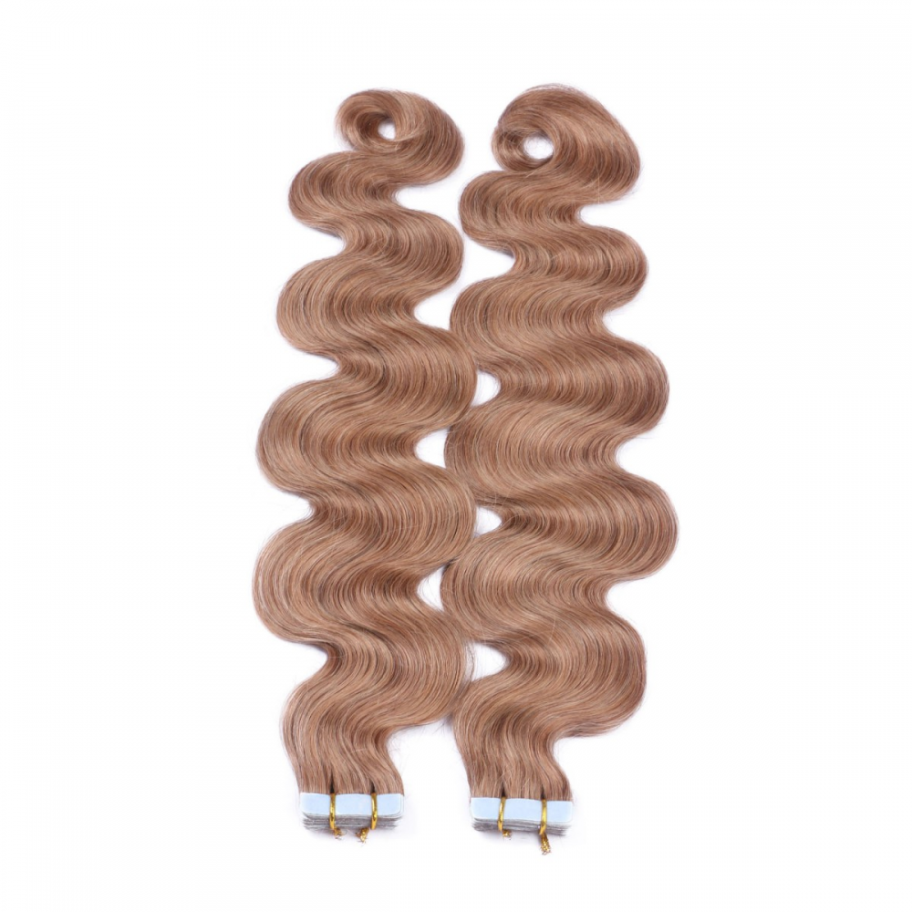 10 x Tape In - 12 - Hellbraun - GEWELLT Hair Extensions - 2,5g - NOVON EXTENTIONS 50 cm