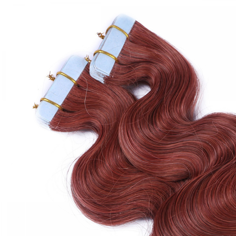 10 x Tape In - 14 - Rot - GEWELLT Hair Extensions - 2,5g - NOVON EXTENTIONS 60 cm