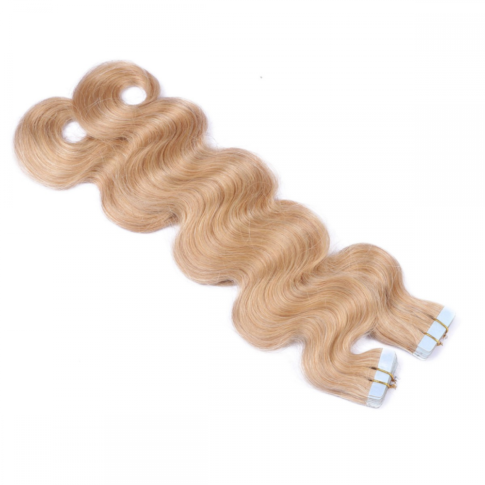 10 x Tape In - 18 - Naturaschblond - GEWELLT Hair Extensions - 2,5g - NOVON EXTENTIONS 60 cm