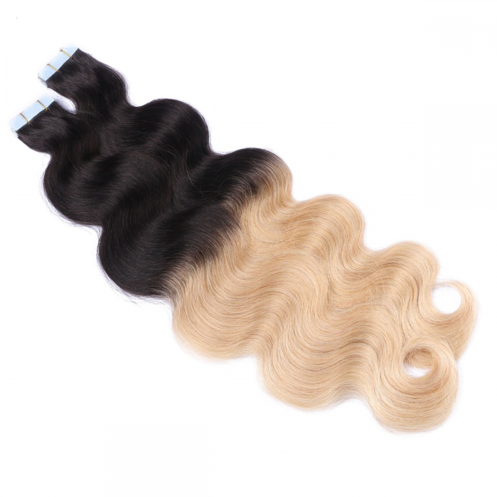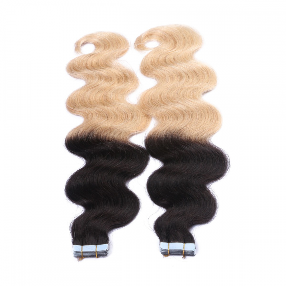 10 x Tape In - 1b/24 Ombre - GEWELLT Hair Extensions - 2,5g - NOVON EXTENTIONS 50 cm