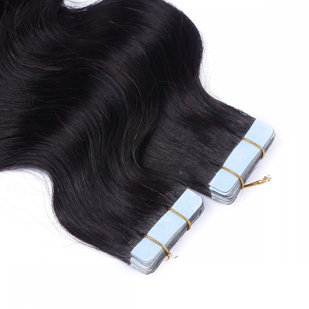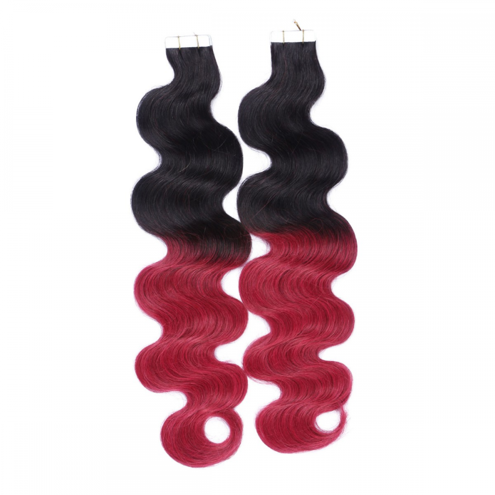 10 x Tape In - 1b/Burg Ombre - GEWELLT Hair Extensions - 2,5g - NOVON EXTENTIONS 50 cm