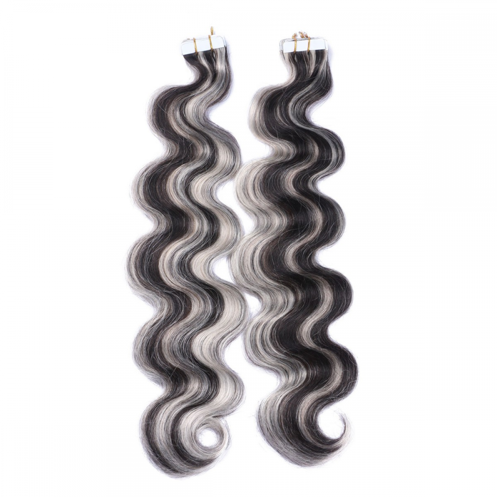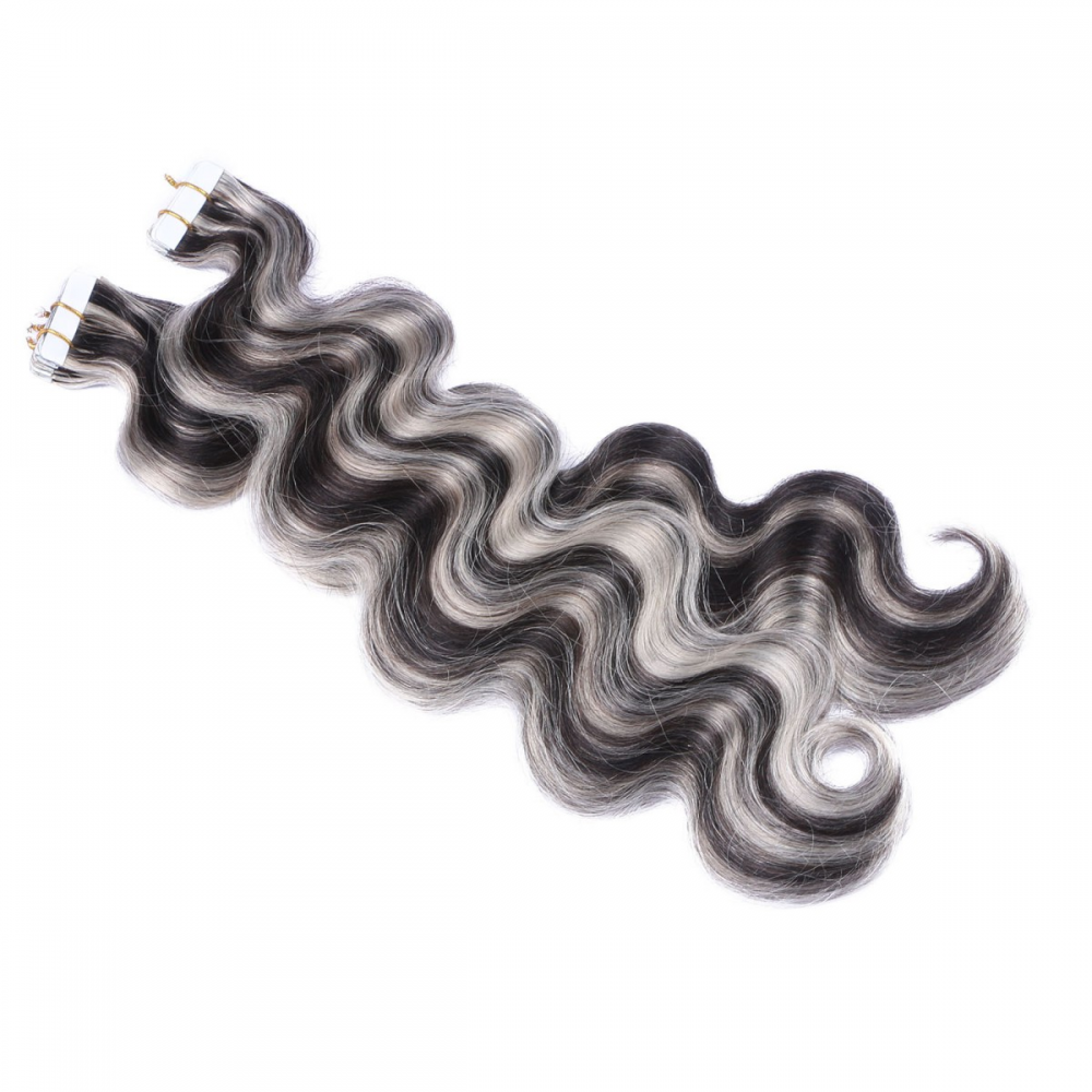 10 x Tape In - 1b/Grey Gesträhnt - GEWELLT Hair Extensions - 2,5g - NOVON EXTENTIONS 60 cm