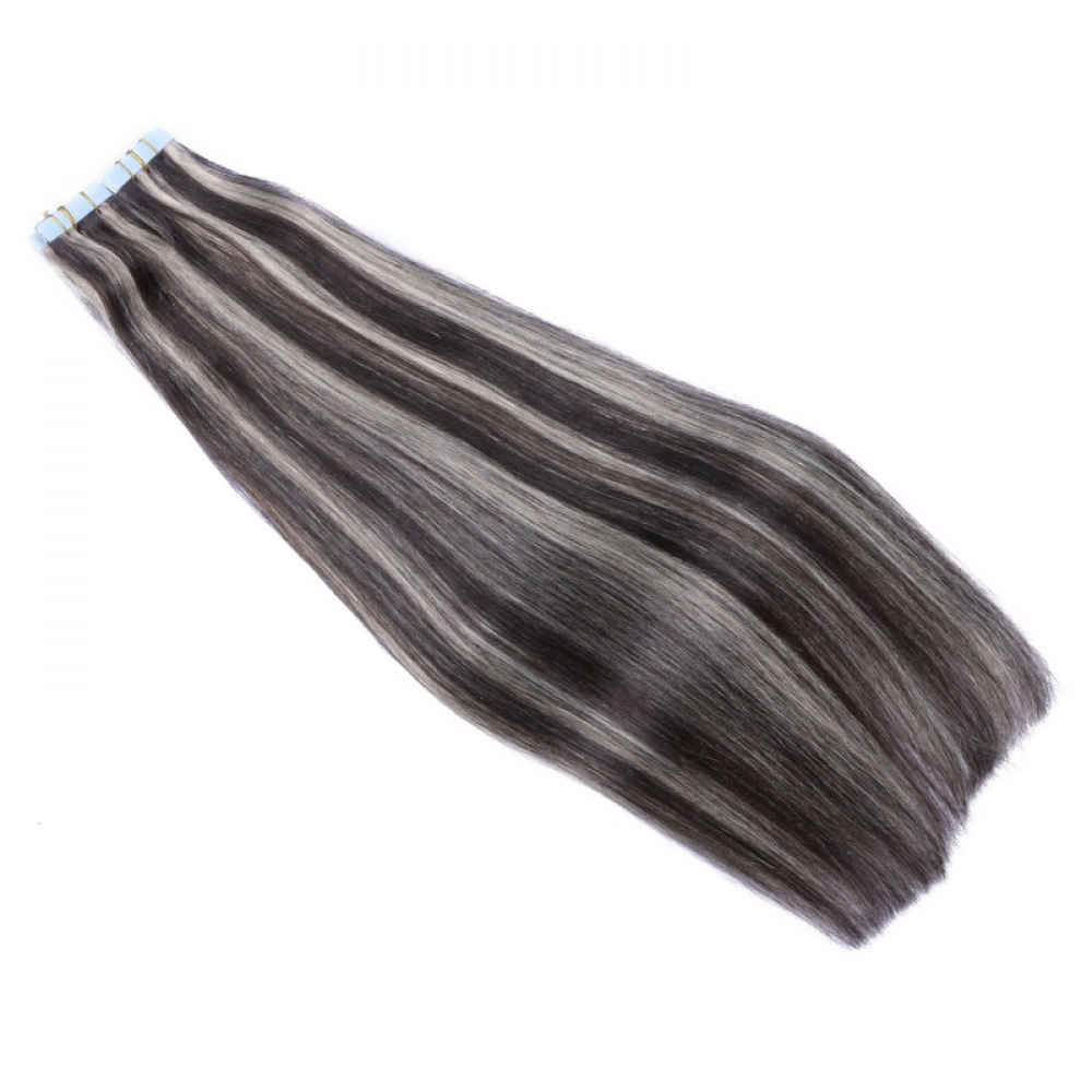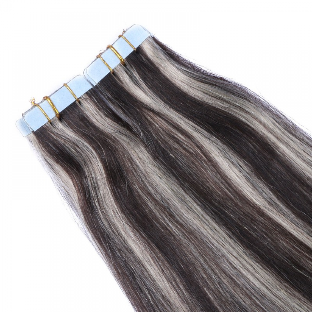 10 x Tape In (#1b/Grey Geträhnt) Hair Extensions - 2,5g 60 cm