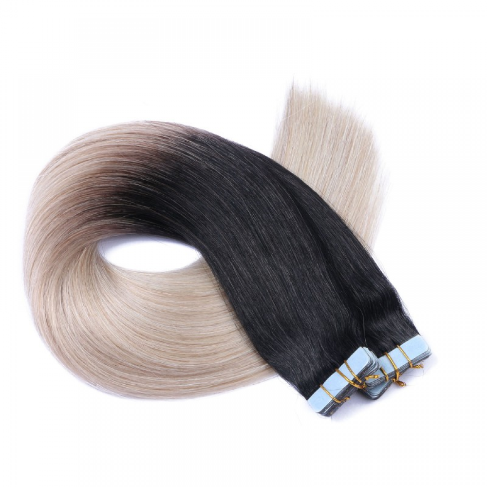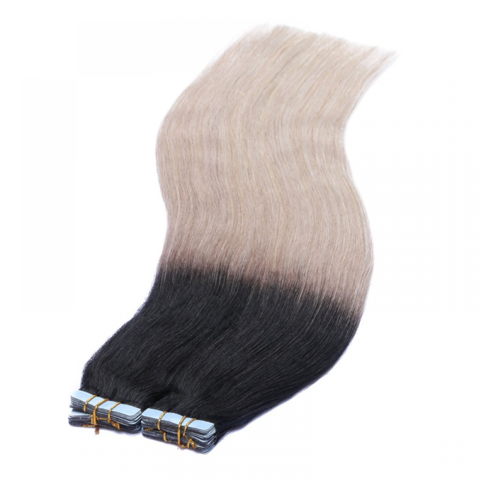 10 x Tape In - 1b/Grey Ombre - Hair Extensions - 2,5g - NOVON EXTENTIONS 60 cm