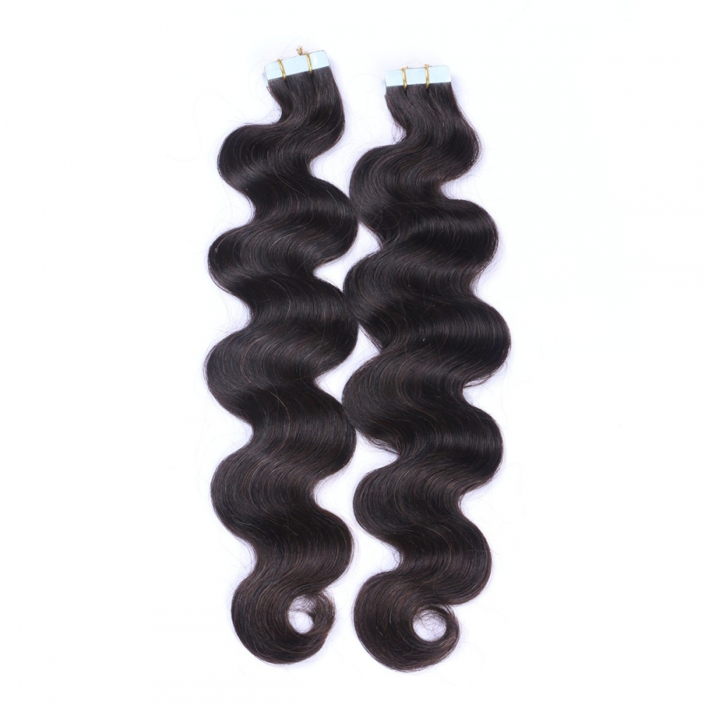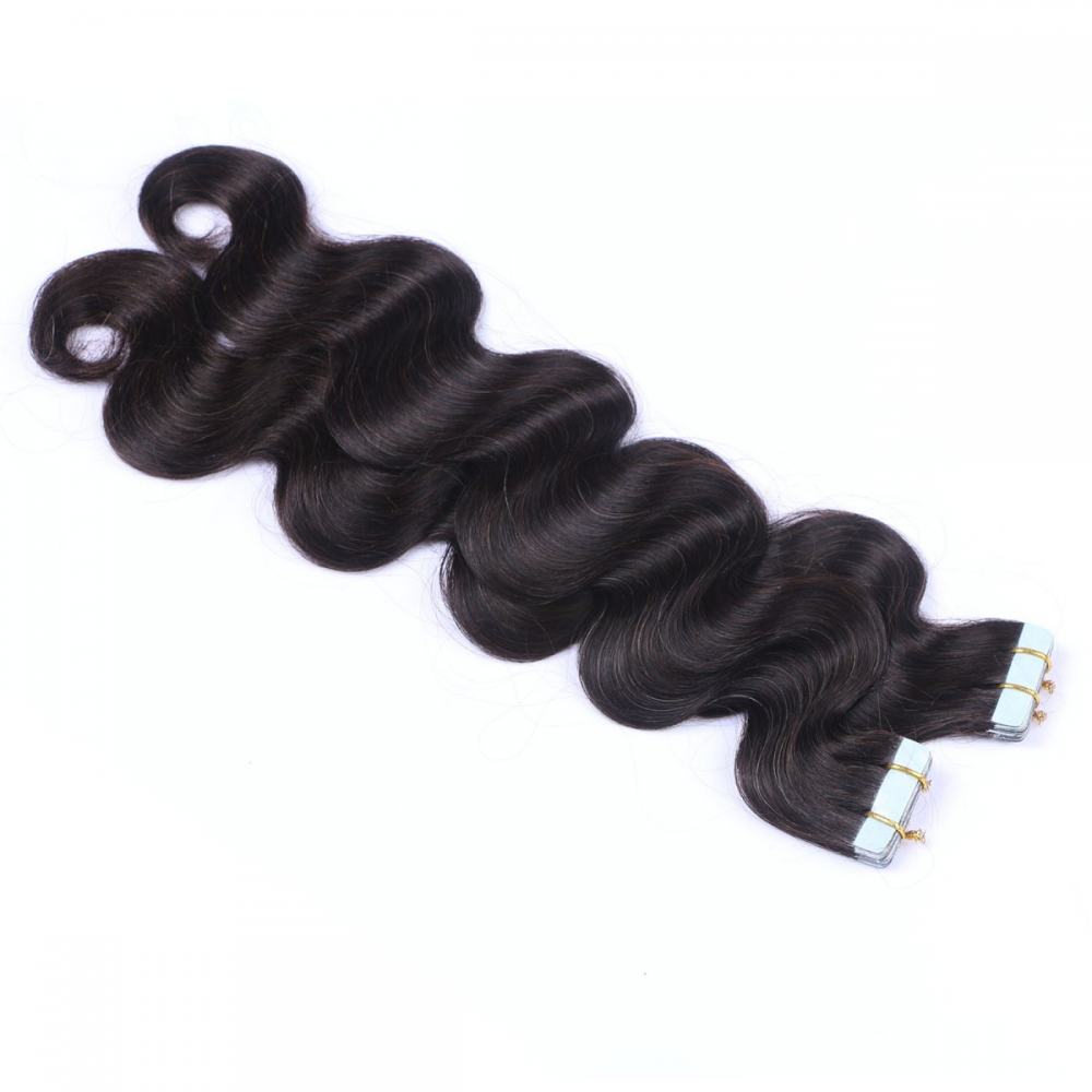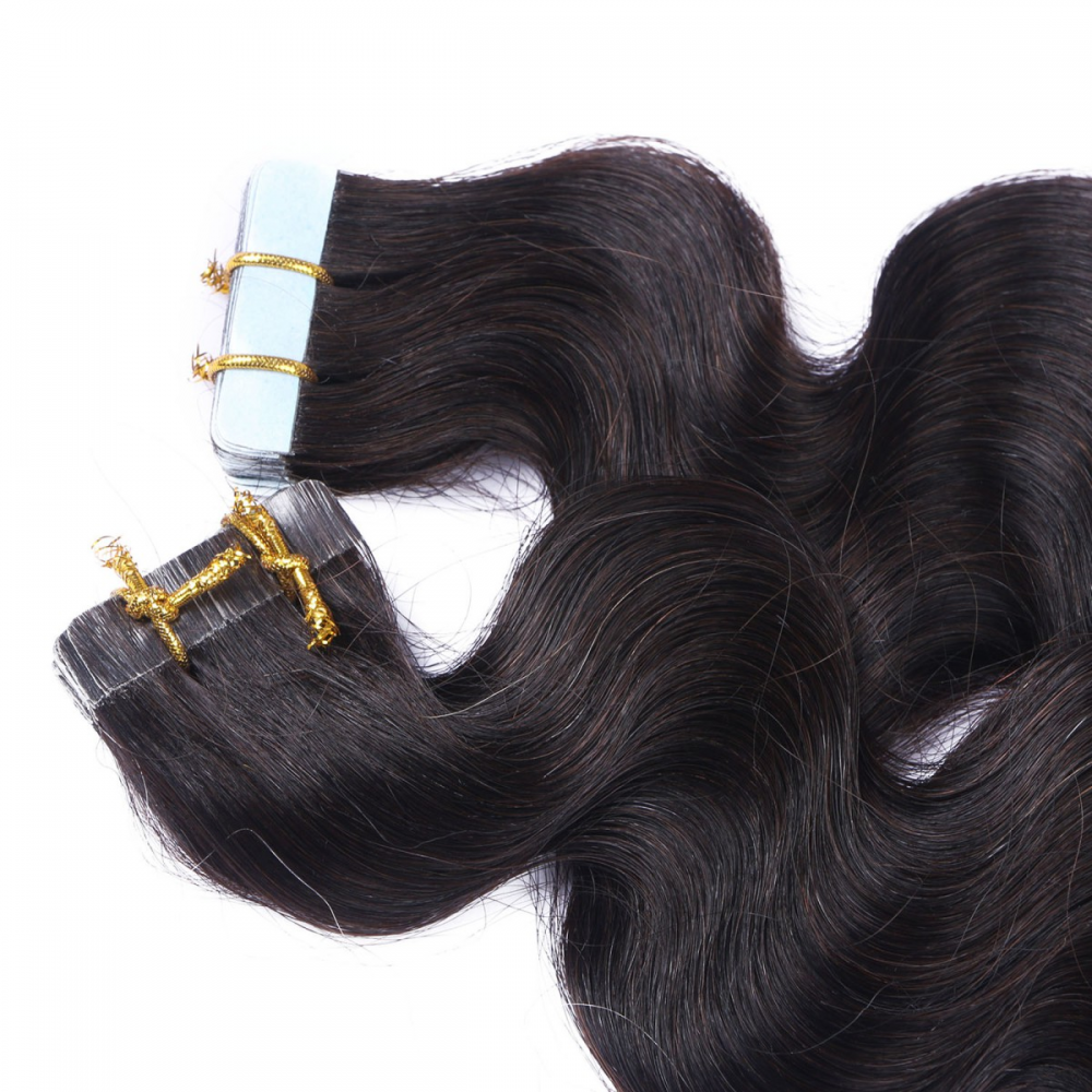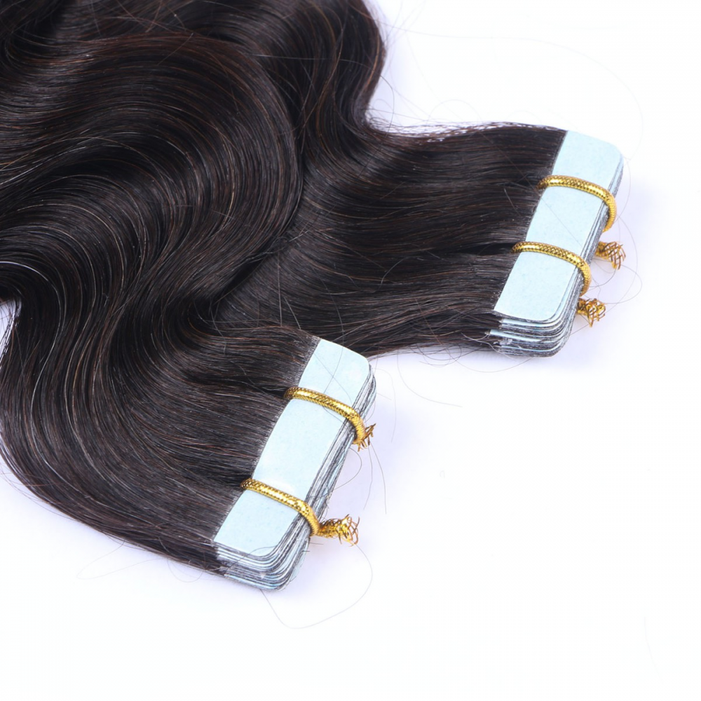 10 x Tape In - 1b - Schwarzbraun - GEWELLT Hair Extensions - 2,5g - NOVON EXTENTIONS 60 cm
