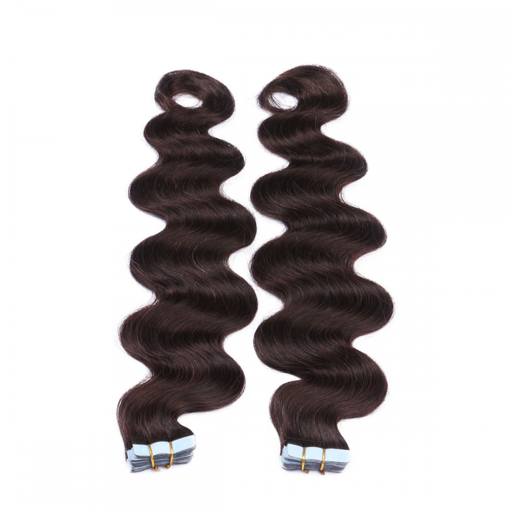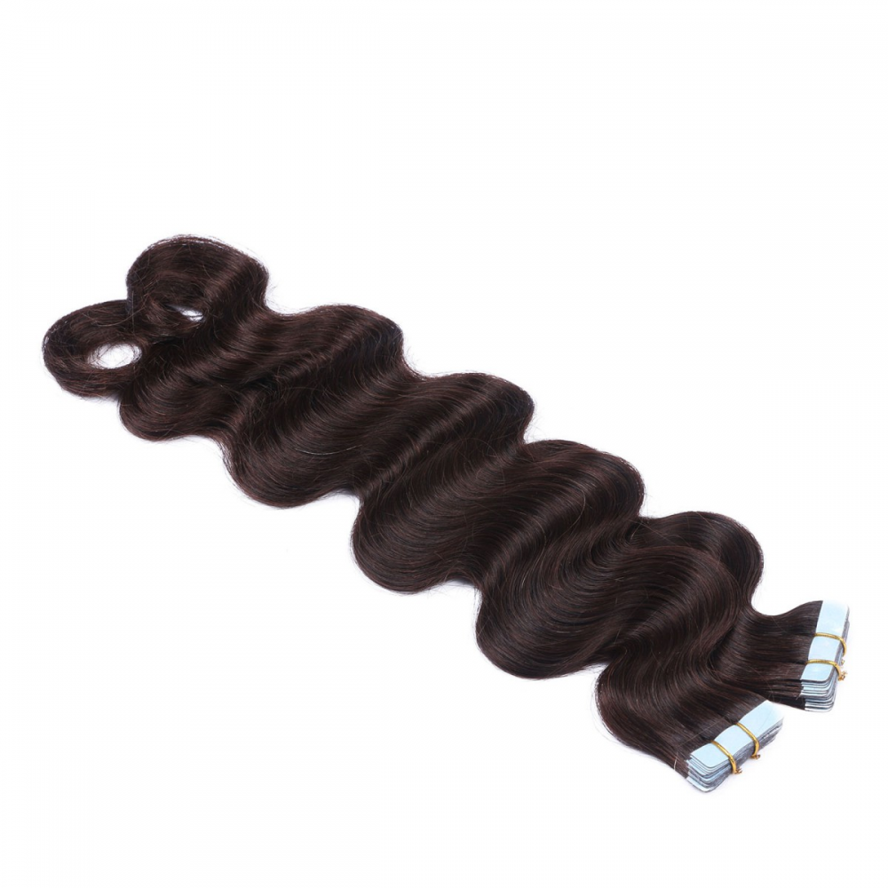 10 x Tape In - 2 - Dunkelbraun - GEWELLT Hair Extensions - 2,5g - NOVON EXTENTIONS 50 cm