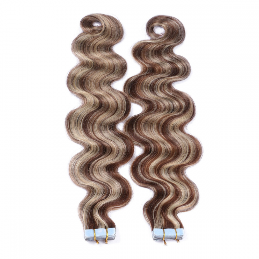 10 x Tape In - 4/24 Gesträhnt - GEWELLT Hair Extensions - 2,5g - NOVON EXTENTIONS 50 cm
