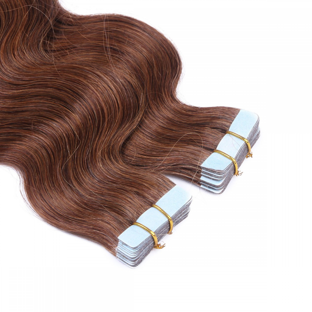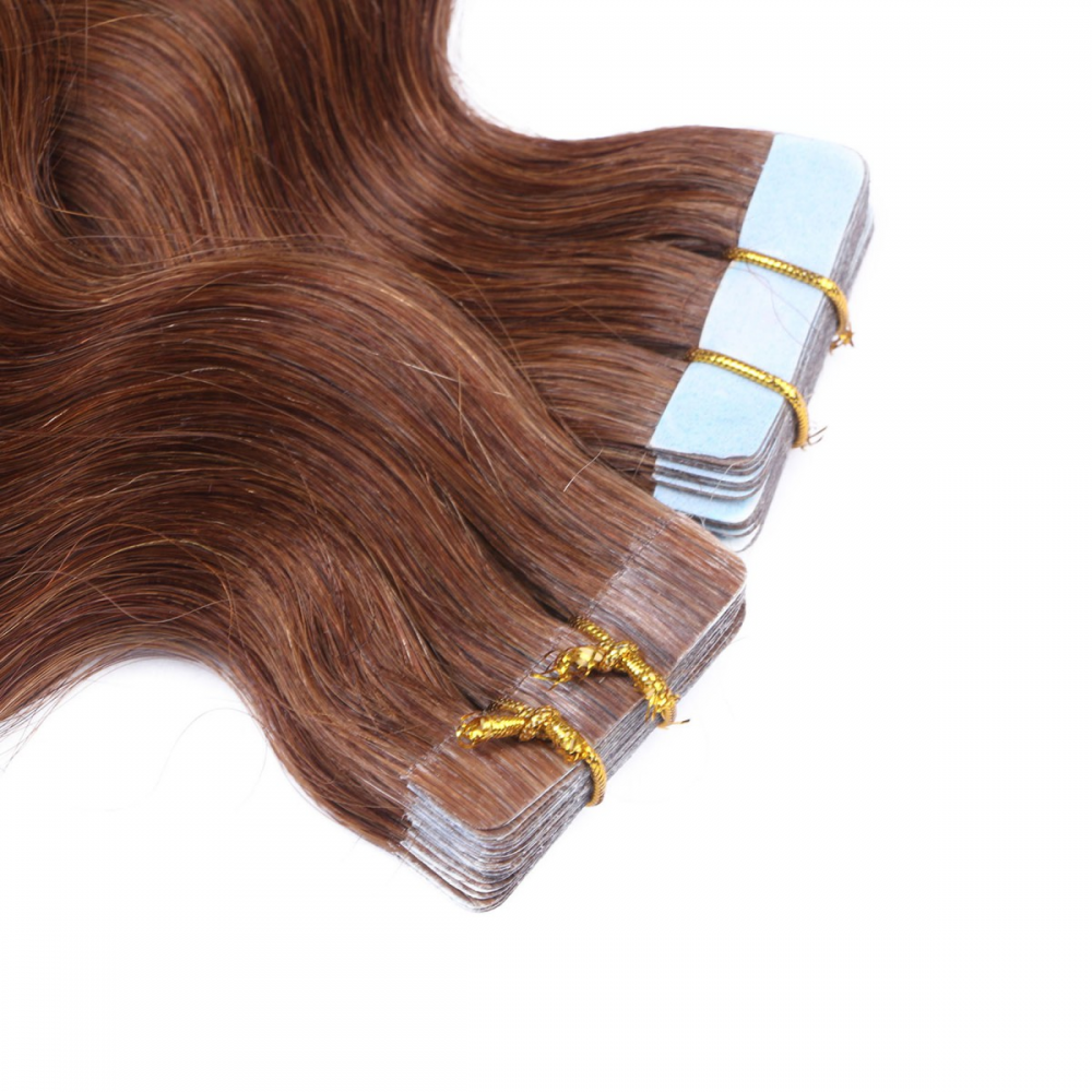 10 x Tape In - 6 - Braun - GEWELLT Hair Extensions - 2,5g - NOVON EXTENTIONS 50 cm