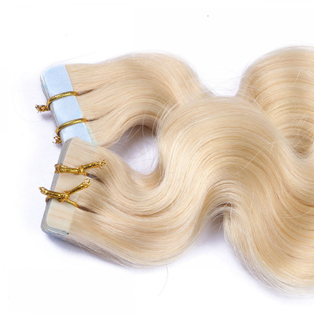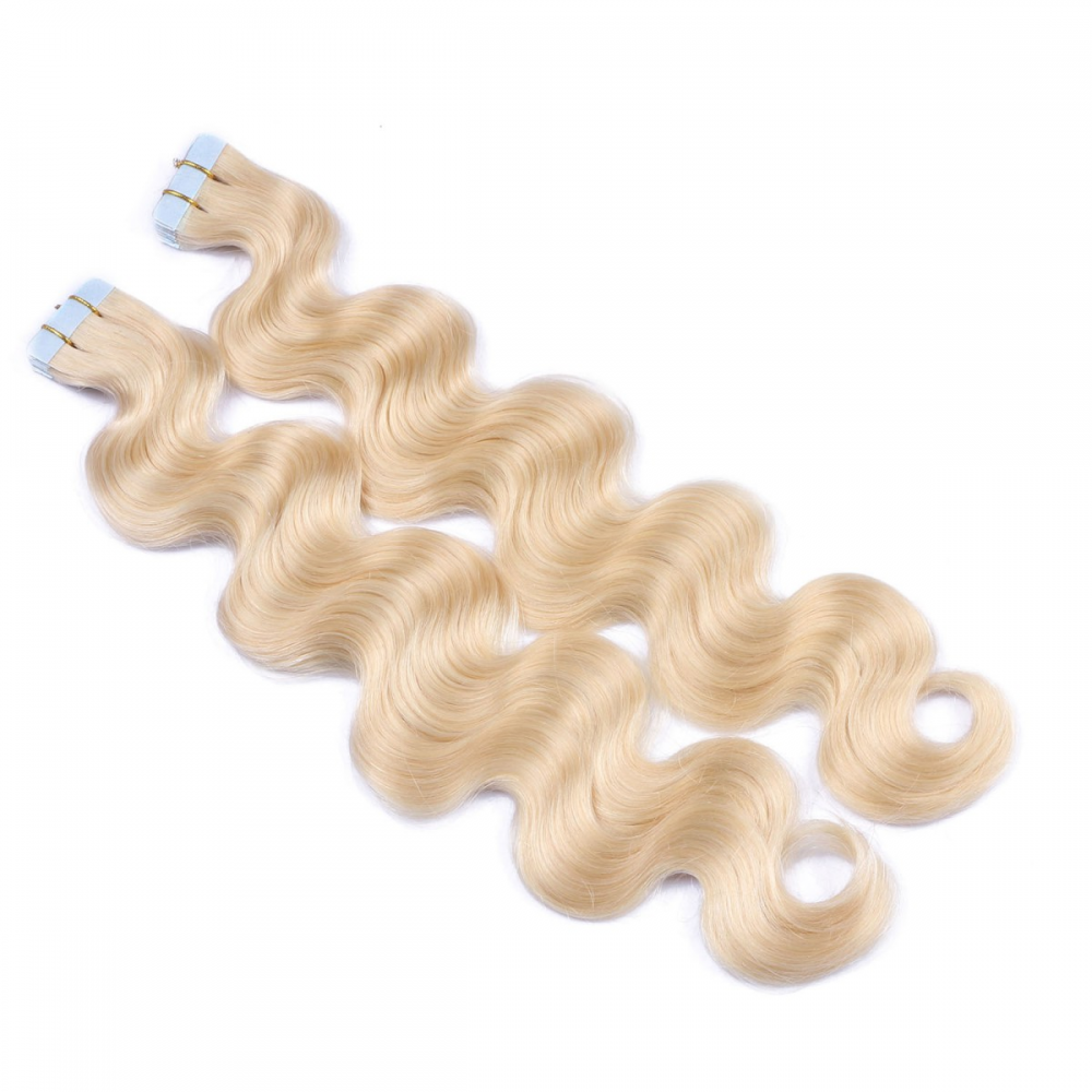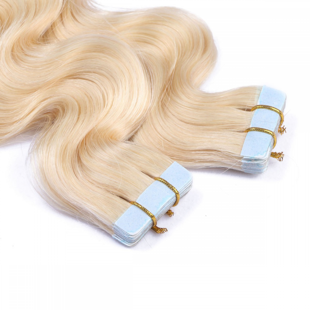 10 x Tape In - 613 - Helllichtblondblond - GEWELLT Hair Extensions - 2,5g - NOVON EXTENTIONS 60 cm