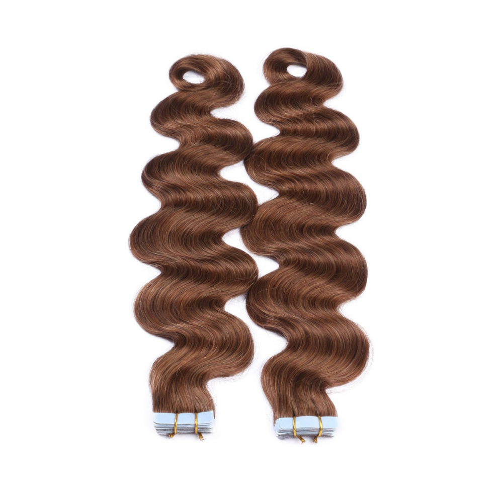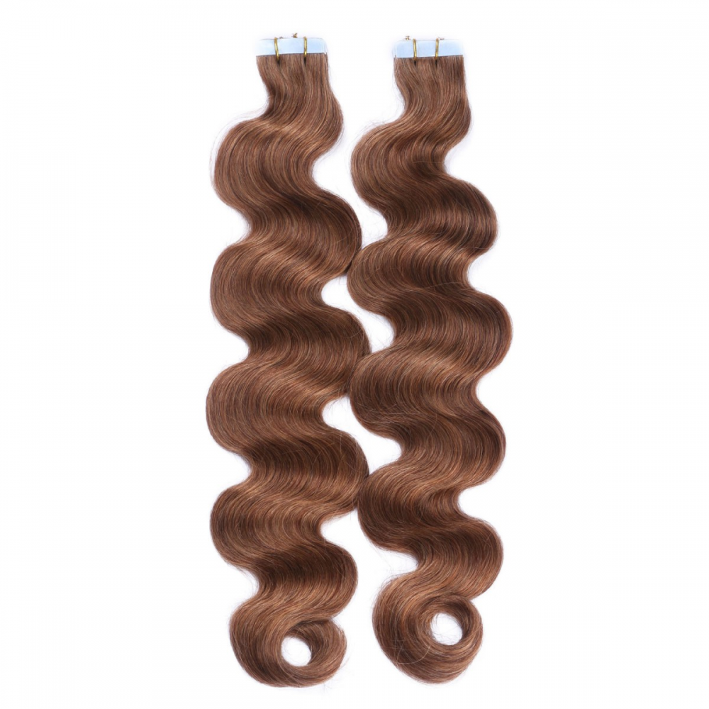 10 x Tape In - 8 - Goldbraun - GEWELLT Hair Extensions - 2,5g - NOVON EXTENTIONS 60 cm