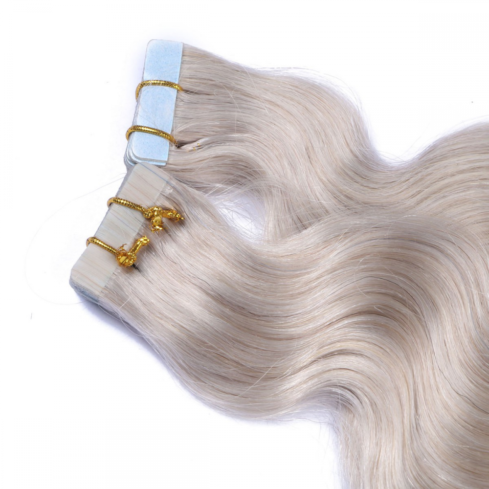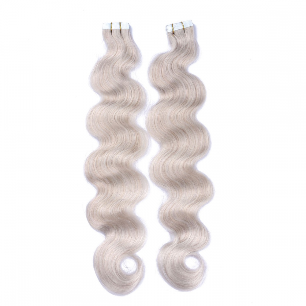 10 x Tape In - Grey / Grau - GEWELLT Hair Extensions - 2,5g - NOVON EXTENTIONS 50 cm