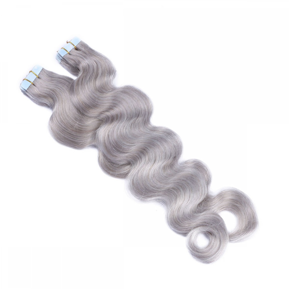 10 x Tape In - Silver - GEWELLT Hair Extensions - 2,5g - NOVON EXTENTIONS 60 cm