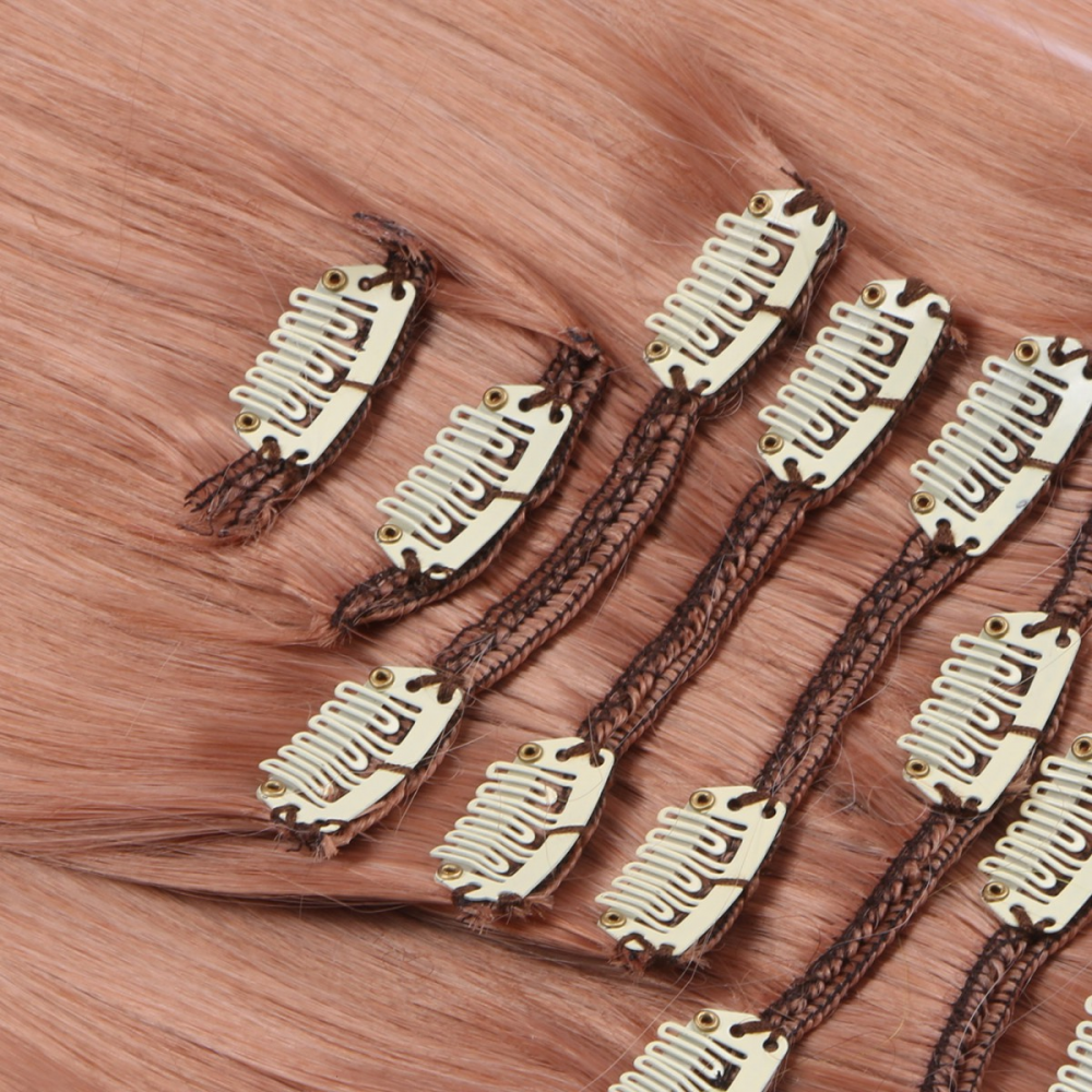 Mit Clip In Extensions in ein paar Minuten zur Traumfrisur. Mit diesem Haarverlängerung Set lassen sich Kurzhaarfrisuren im Handumdrehen zu Langhaarfrisuren machen. Auch ideal für kurzfristiges Verdichten der Eigenhaare geeignet. Die einfache Befestigungstechnik ermöglicht ein schnelles Anbringen und entfernen der Haartressen aus Ihrem Eigenhaar.