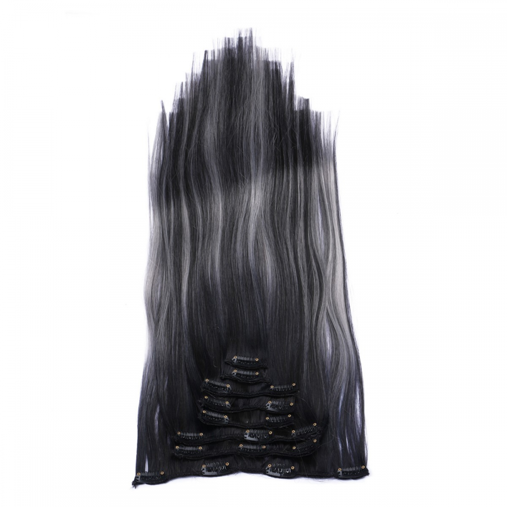 #1B/Grey Gesträhnt - Clip In Extensions / 8 Tressen / Haarverlängerung XXL Komplettset 60 cm - Glatt