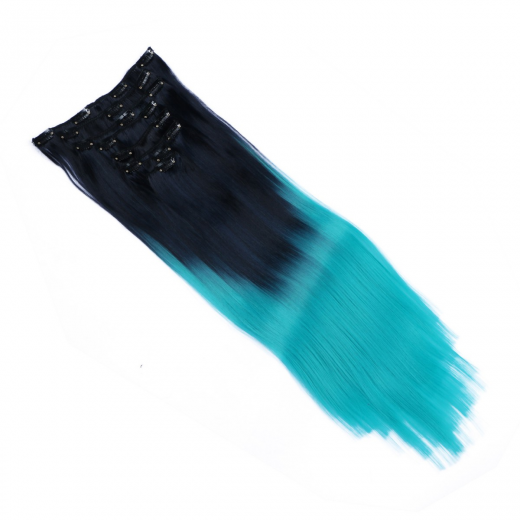 #1B/Skyblue Ombre - Clip-In Hair Extensions / 8 Tressen / Haarverlängerung XXL Komplettset