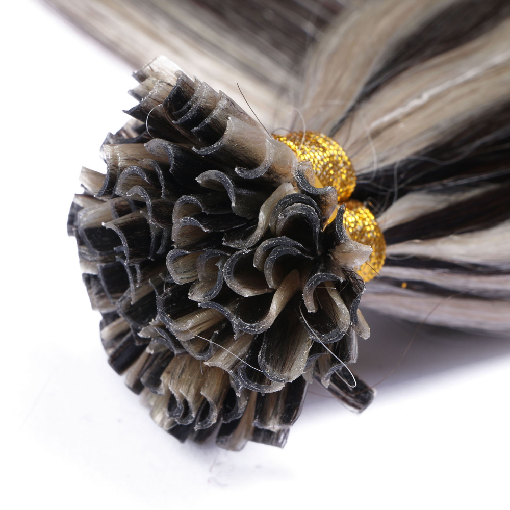25 x Keratin Bonding Hair Extensions - 1b/Grey Gesträhnt - 100% Echthaar - NOVON EXTENTIONS 60 cm - 0,5 g