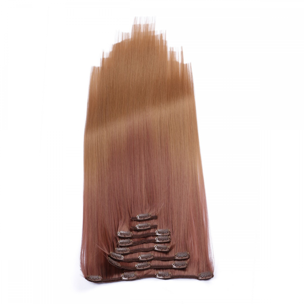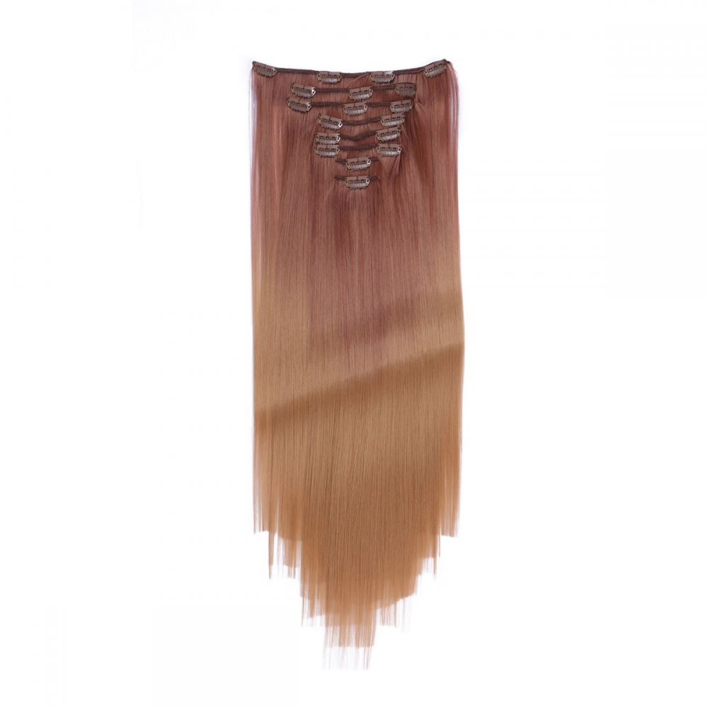 #4/27 Ombre - Clip-In Hair Extensions / 8 Tressen / Haarverlängerung XXL Komplettset 60 cm - Gewellt