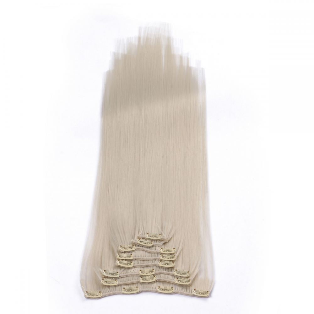 Mit Clip In Extensions in ein paar Minuten zur Traumfrisur. Mit diesem Haarverlängerung Set lassen sich Kurzhaarfrisuren im Handumdrehen zu Langhaarfrisuren machen. Auch ideal für kurzfristiges Verdichten der Eigenhaare geeignet. Die einfache Befestigungstechnik ermöglicht ein schnelles Anbringen und entfernen der Haartressen aus Ihrem Eigenhaar.