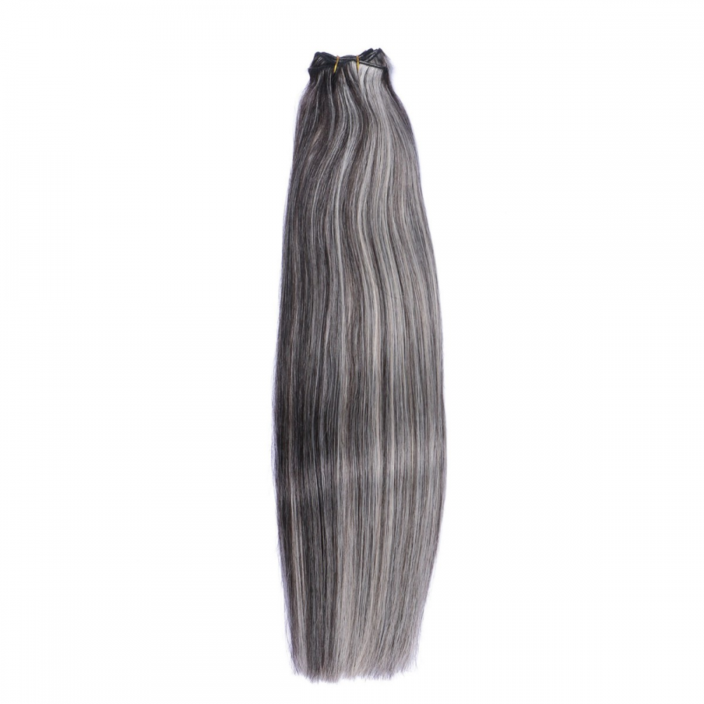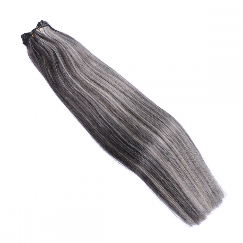 Echthaar Tressen - Weft Extentions - 1b/Grey Gesträhnt 50 cm