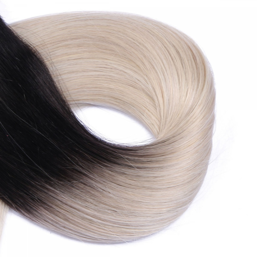 Echthaar Tressen - Weft Extentions - 1b/Grey Ombre 50 cm