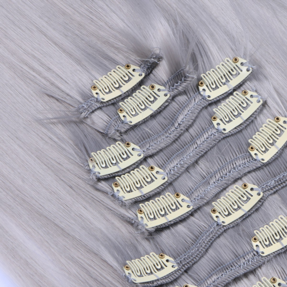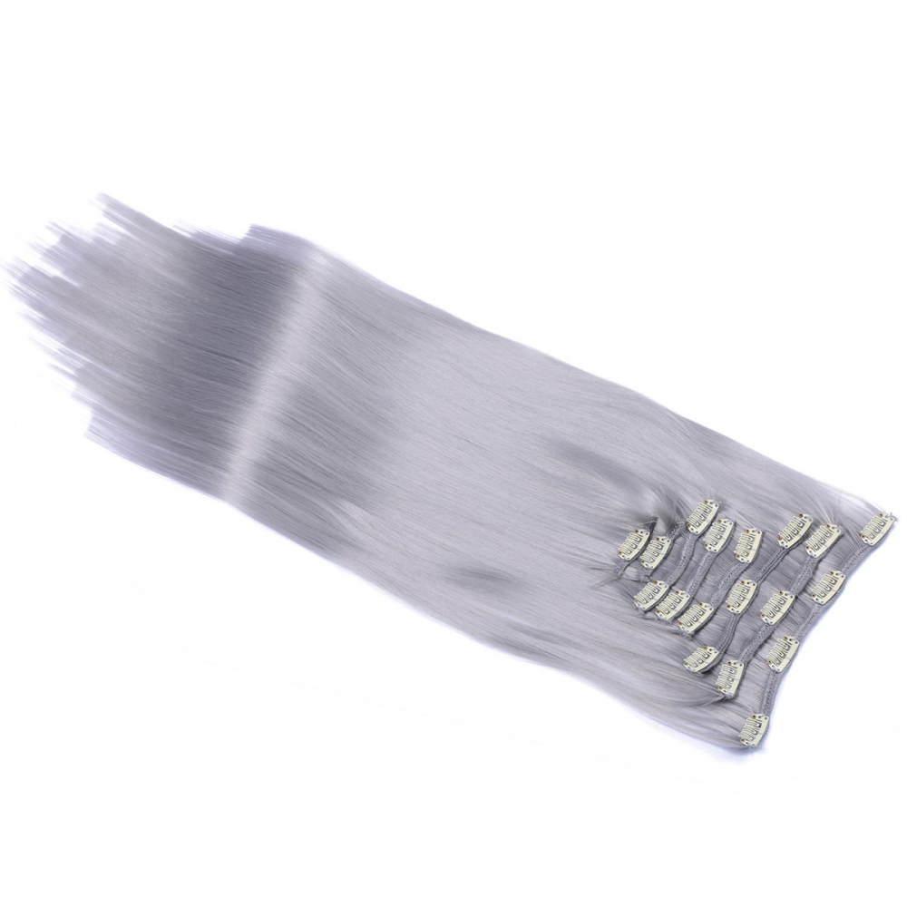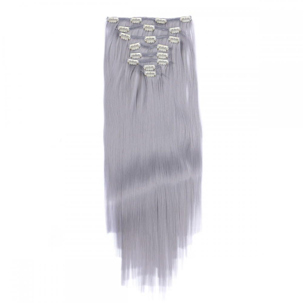 #Grey/Grau - Clip-In Hair Extensions / 8 Tressen / Haarverlängerung XXL Komplettset 50 cm - Glatt