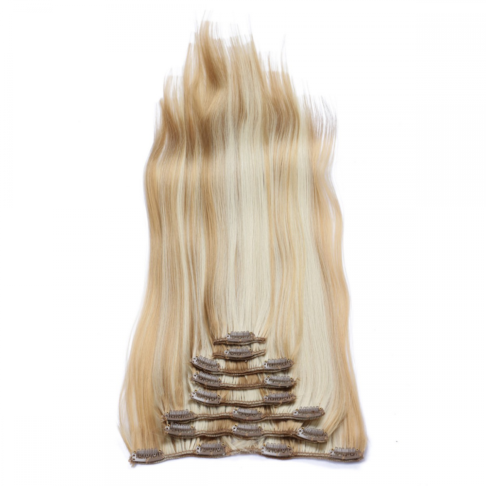 #H27/613 Gesträhnt - Clip-In Hair Extensions / 8 Tressen / Haarverlängerung XXL Komplettset 50 cm - Glatt