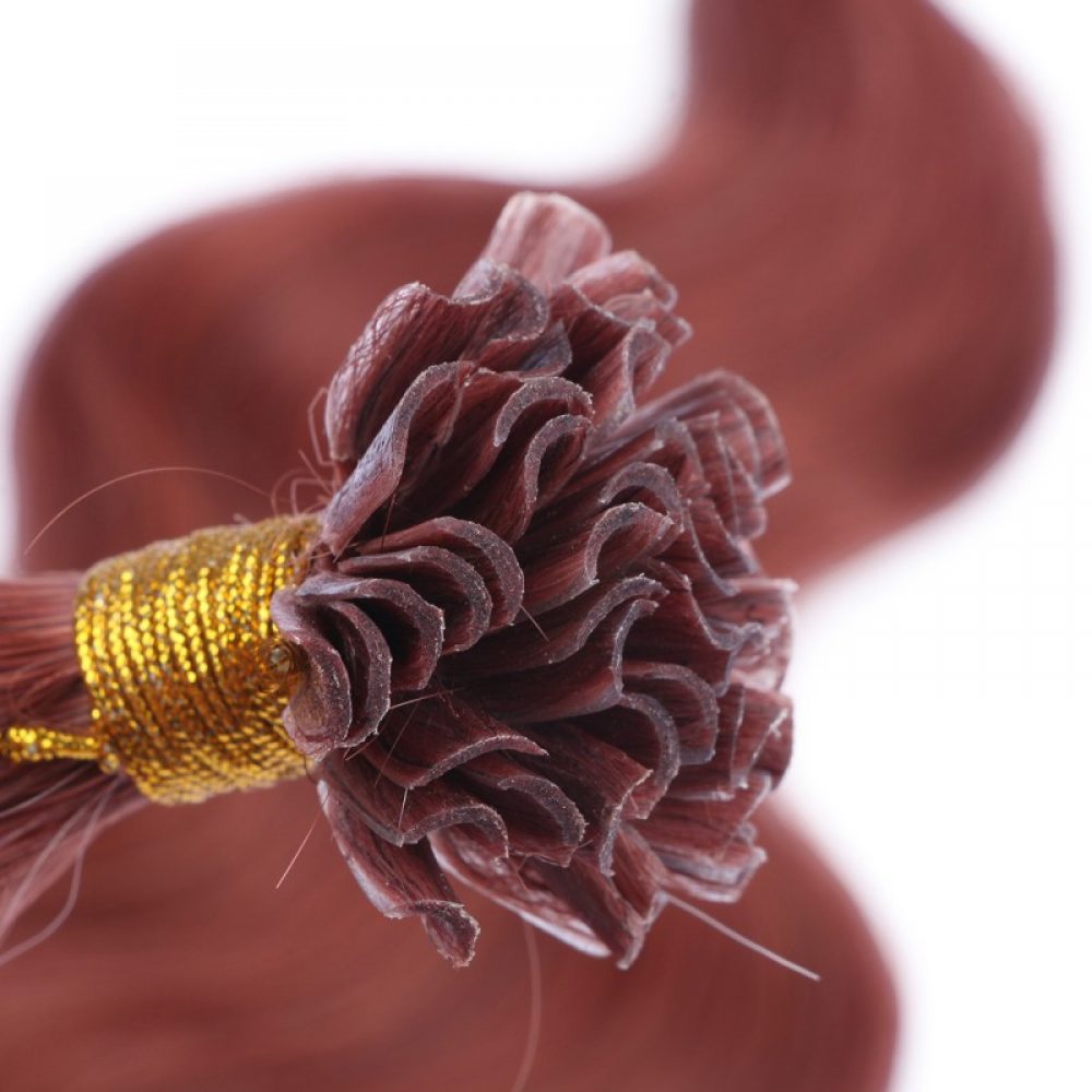 25 Keratin Bonding Hair Extensions - 14 Rot - GEWELLT 100% Echthaar 1g Strähne - NOVON EXTENTIONS 50cm