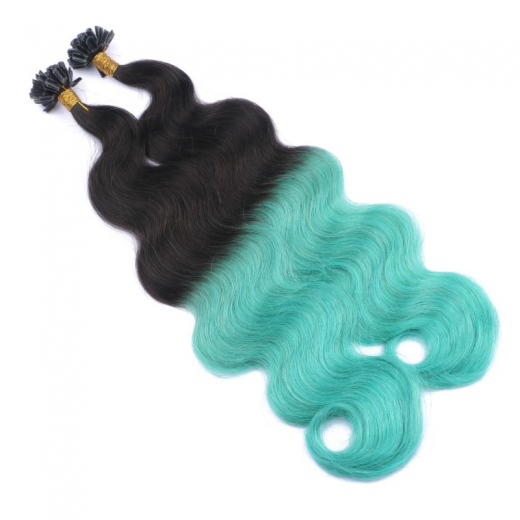 25 Keratin Bonding Hair Extensions - 1b/Sky Blue Ombre - GEWELLT 100% Echthaar 1g Strähne - NOVON EXTENTIONS