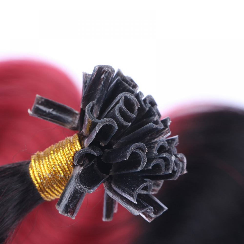 25 Keratin Bonding Hair Extensions - 1b/Burg Ombre - GEWELLT 120% Echthaar 1g Strähne - NOVON EXTENTIONS 60cm