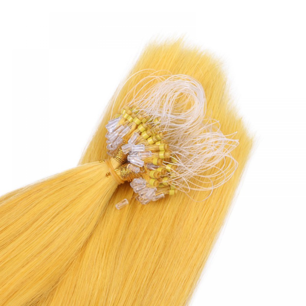 25 x Micro Ring / Loop - Yellow - Hair Extensions 100% Echthaar - NOVON EXTENTIONS 50 cm - 0,5 g