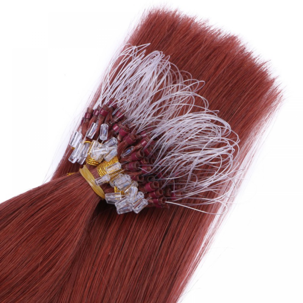 25 x Micro Ring / Loop - 14 Rot - Hair Extensions 100% Echthaar - NOVON EXTENTIONS 50 cm - 0,5 g