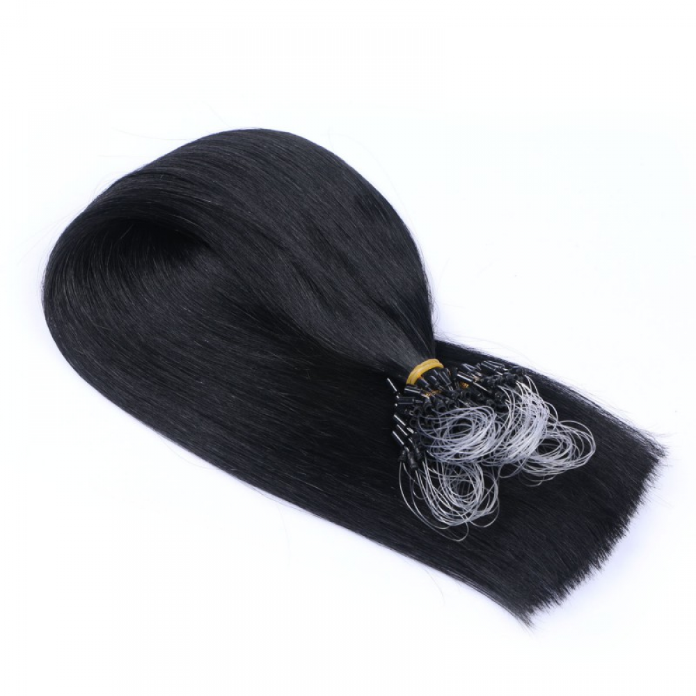 25 x Micro Ring / Loop - 1 Schwarz - Hair Extensions 100% Echthaar - NOVON EXTENTIONS 60 cm - 1 g