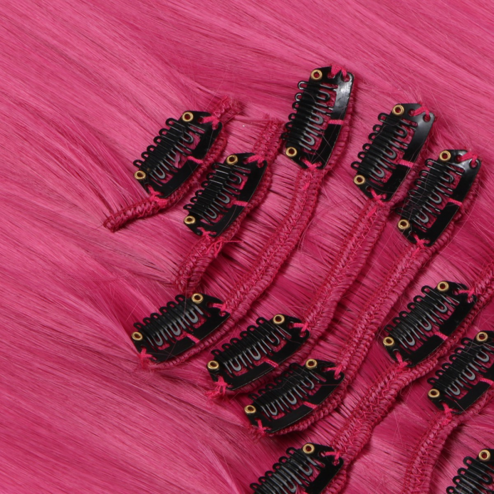 Mit Clip In Extensions in ein paar Minuten zur Traumfrisur. Mit diesem Haarverlängerung Set lassen sich Kurzhaarfrisuren im Handumdrehen zu Langhaarfrisuren machen. Auch ideal für kurzfristiges Verdichten der Eigenhaare geeignet. Die einfache Befestigungstechnik ermöglicht ein schnelles Anbringen und entfernen der Haartressen aus Ihrem Eigenhaar.
