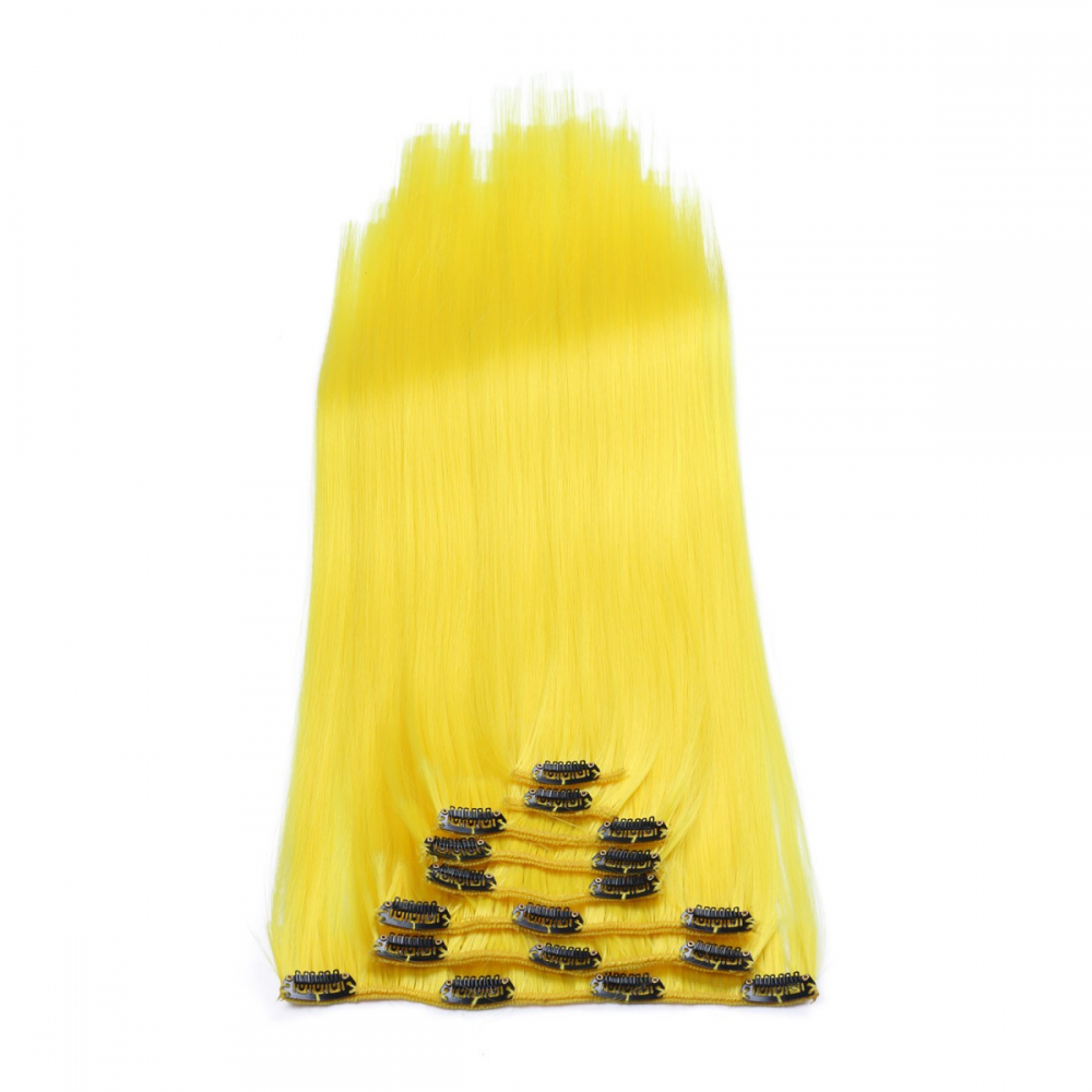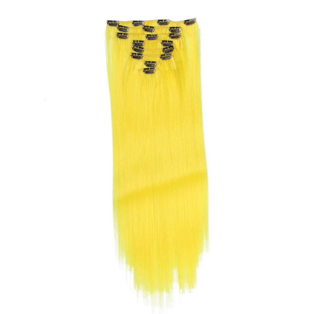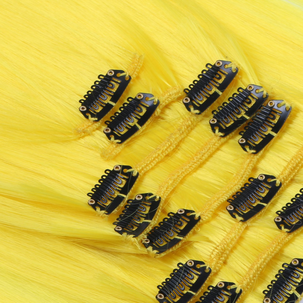 #Yellow - Clip-In Hair Extensions / 8 Tressen / Haarverlängerung XXL Komplettset 60 cm - Gewellt